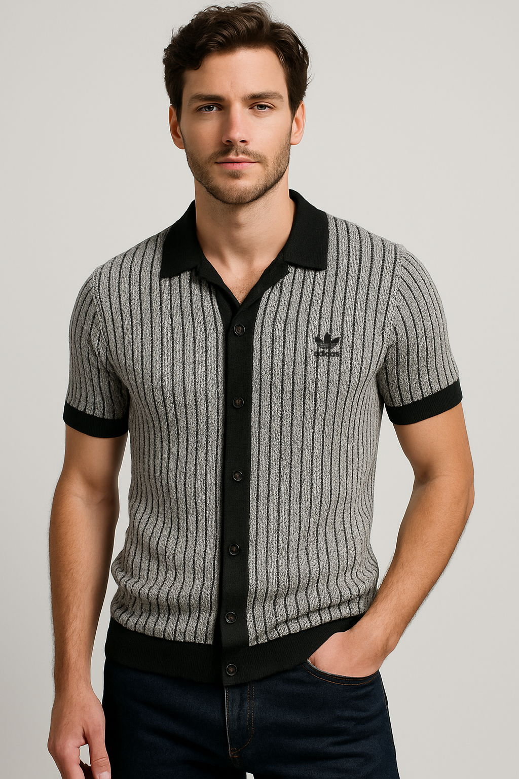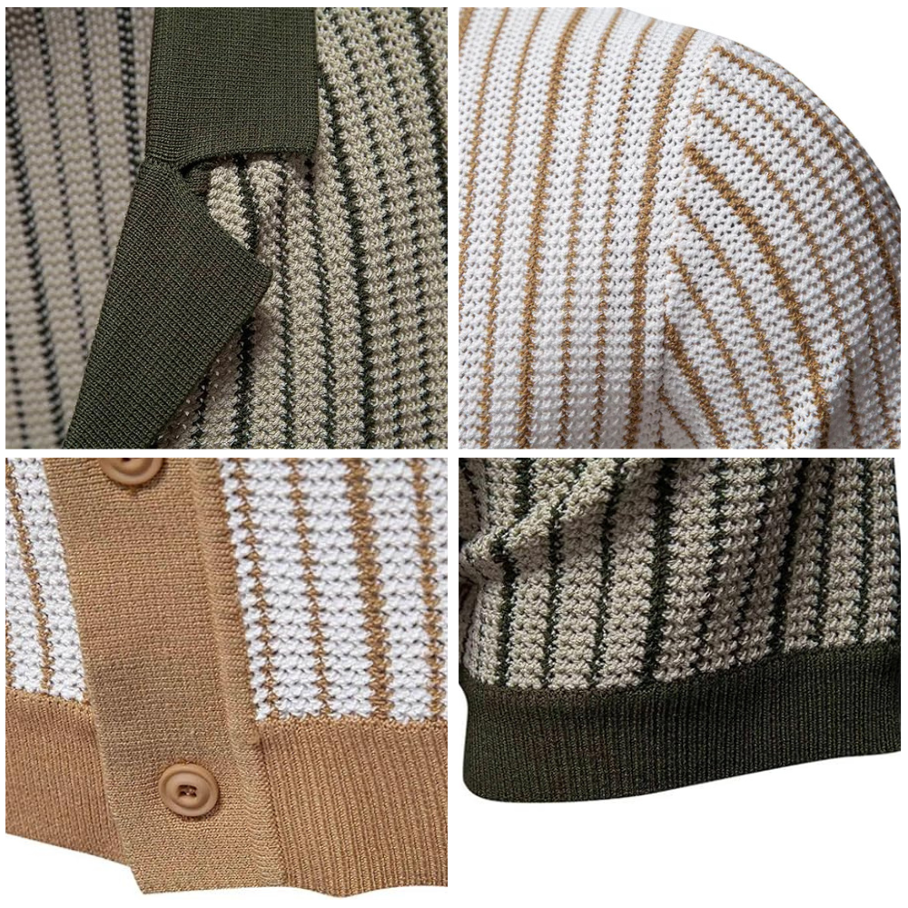 A standout piece that combines retro charm with a contemporary edge. The button-up front and textured knit design bring character and distinction, perfect for those who want their look to stand apart.